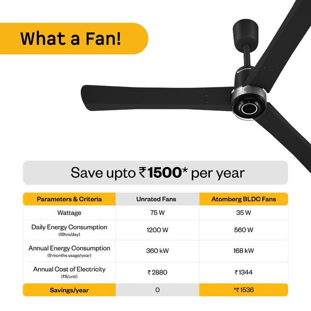 Atomberg Renesa Elite 1200 mm BLDC Ceiling Fan with Remote Control & LED Indicators | Midnight Black