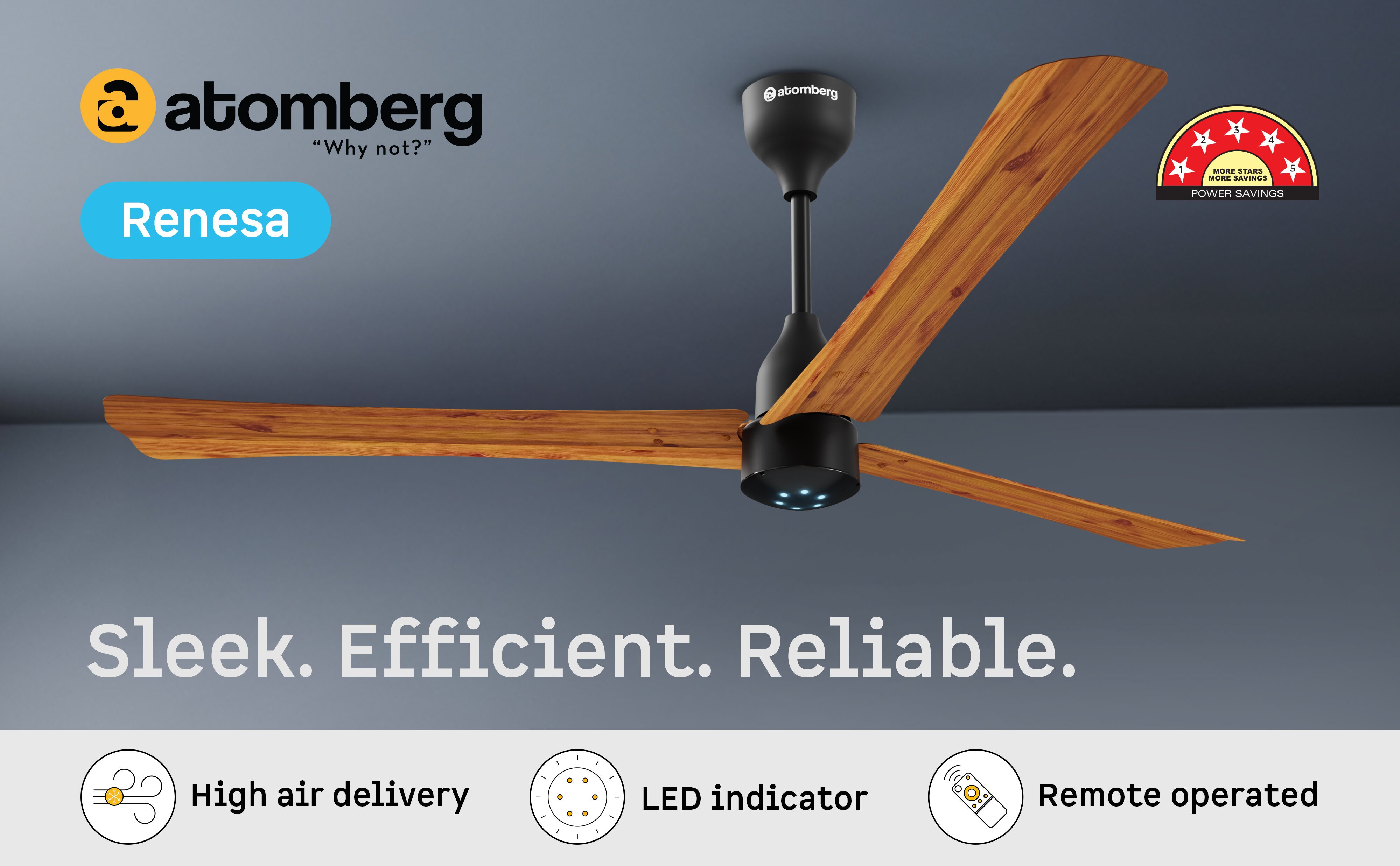 Atomberg Renesa + 1400mm BLDC Ceiling Fan with Remote Control | 5-star rated | High Air Delivery with Moonbeam LED Light | Sleek Design |Energy Efficient | Low Noise| 3 Year Warranty (Golden Oakwood)