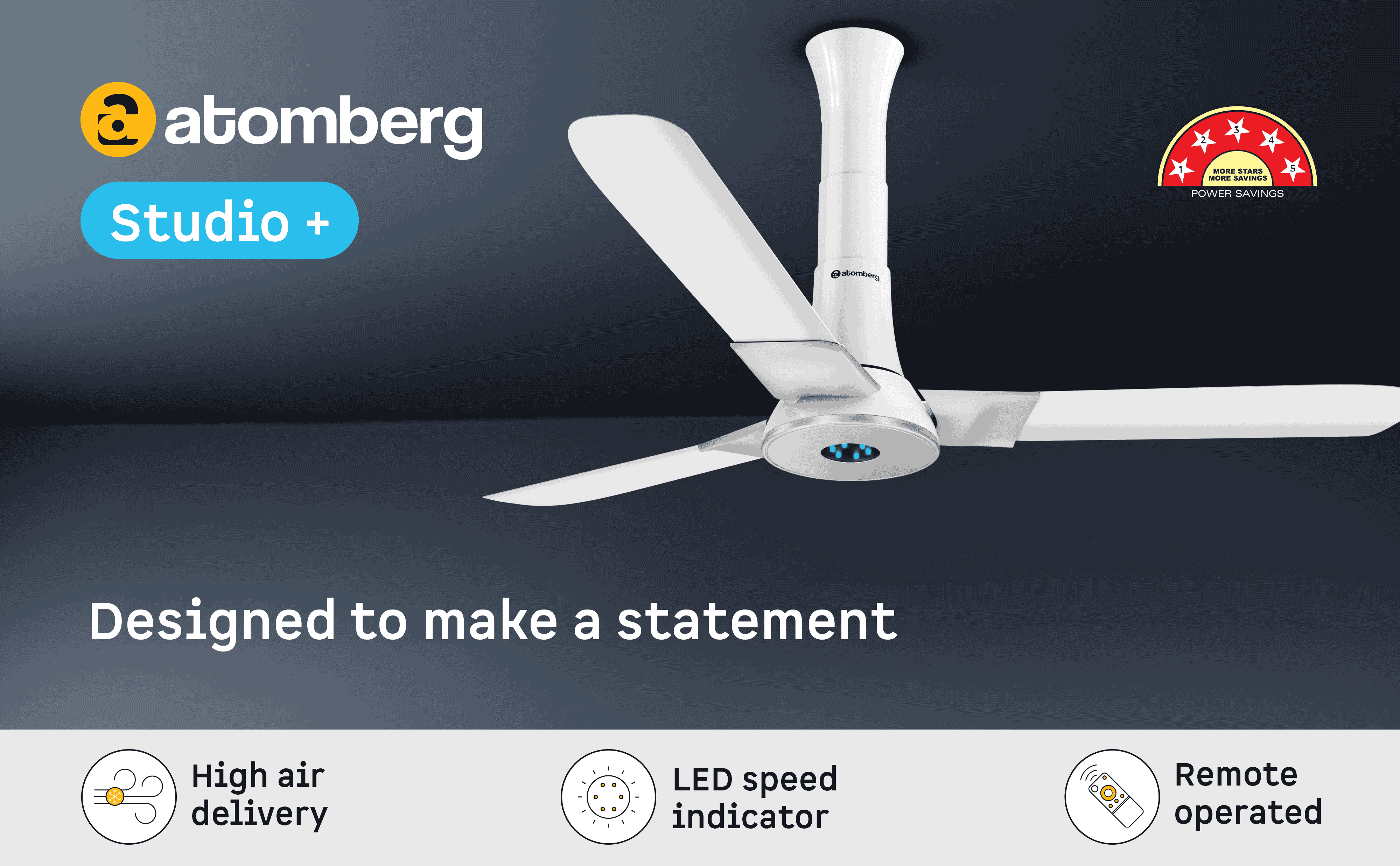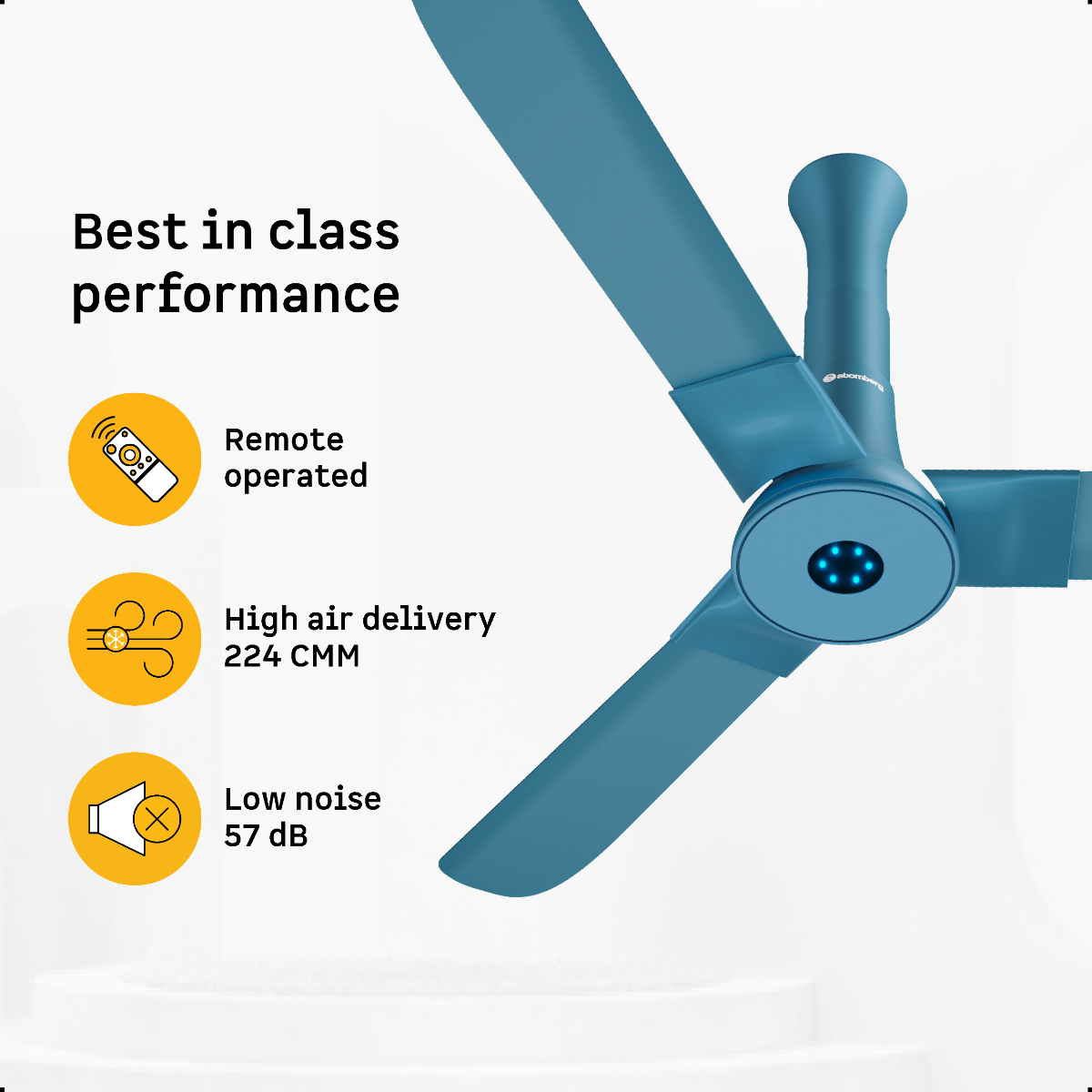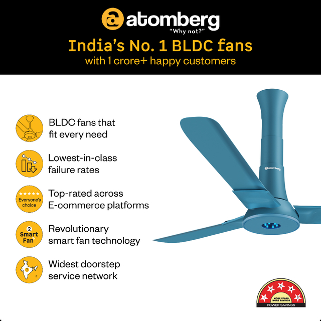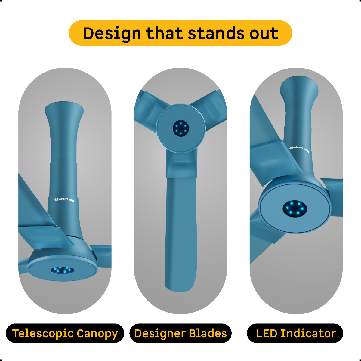 Atomberg Studio+ 1200 mm BLDC Ceiling Fan with Remote Control & LED Indicators | Aegean Blue