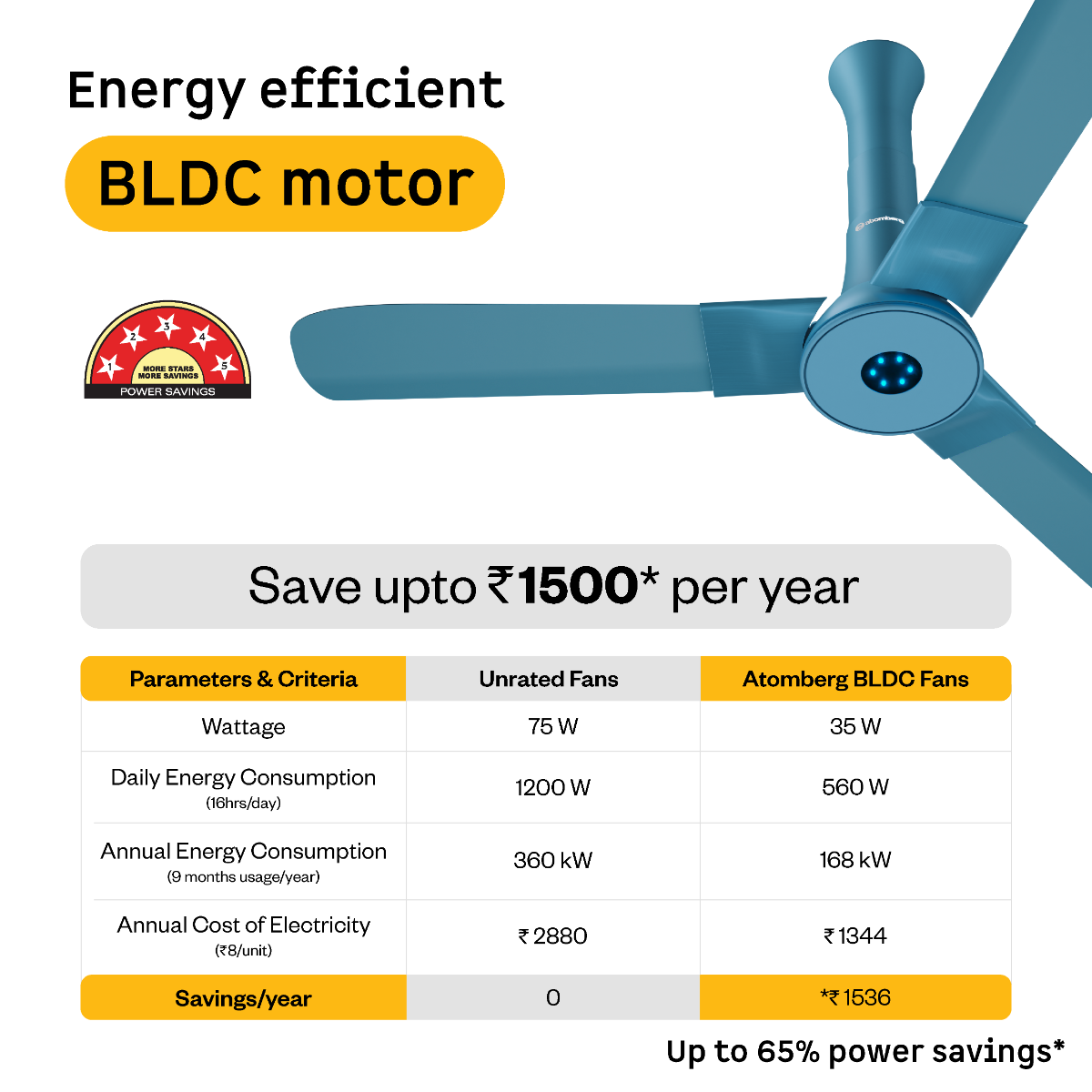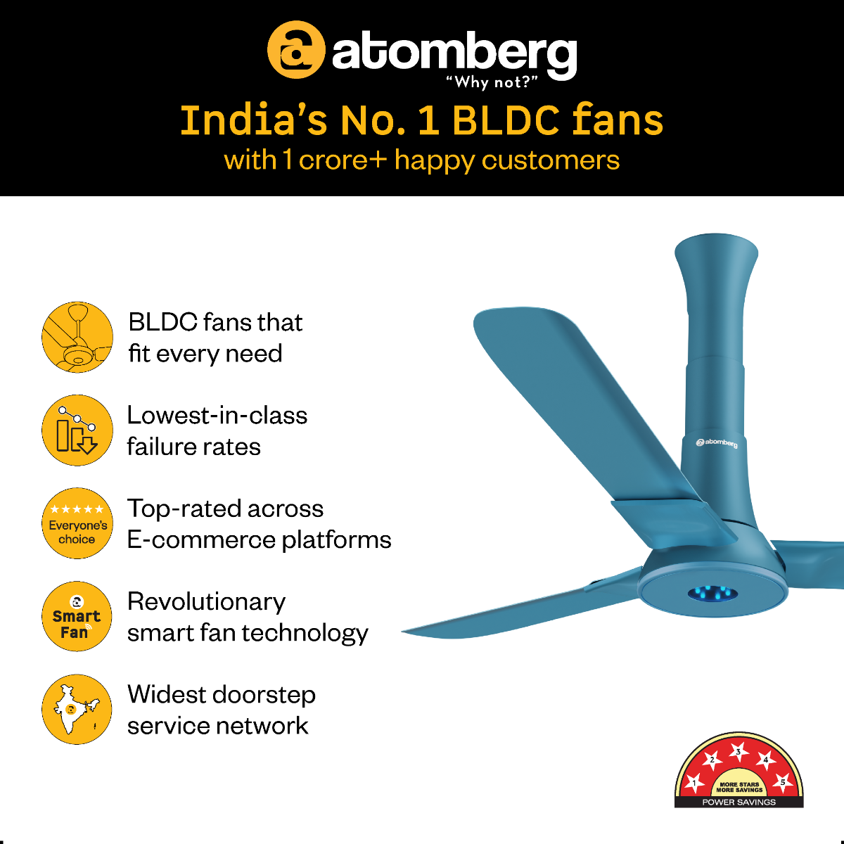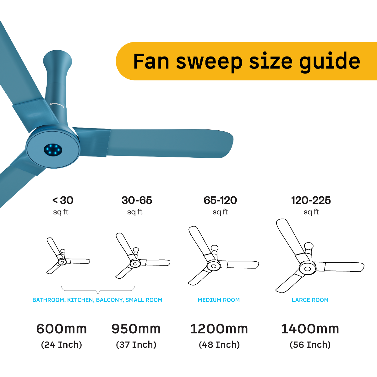 Atomberg Studio+ 1200 mm BLDC Ceiling Fan with Remote Control & LED Indicators | Aegean Blue