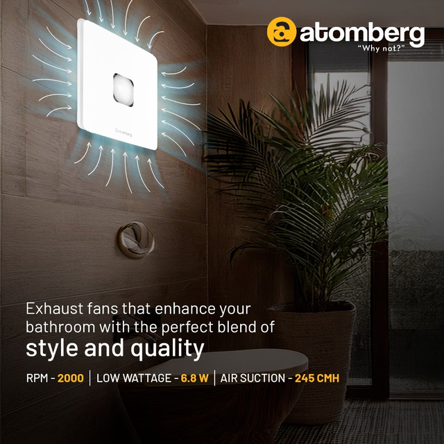 Atomberg Studio+ Exhaust Fan 150mm (6 Inches) | BLDC Motor | 6.8W| Low Noise | 2000 RPM| Ideal for Bathroom,Kitchen | Easy to Clean | Installation-Round Cut (153mm) | 2 Years Warranty | (Gloss White)