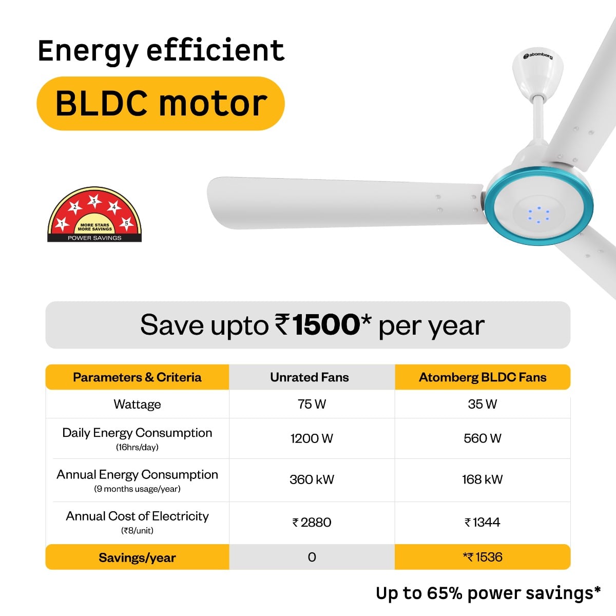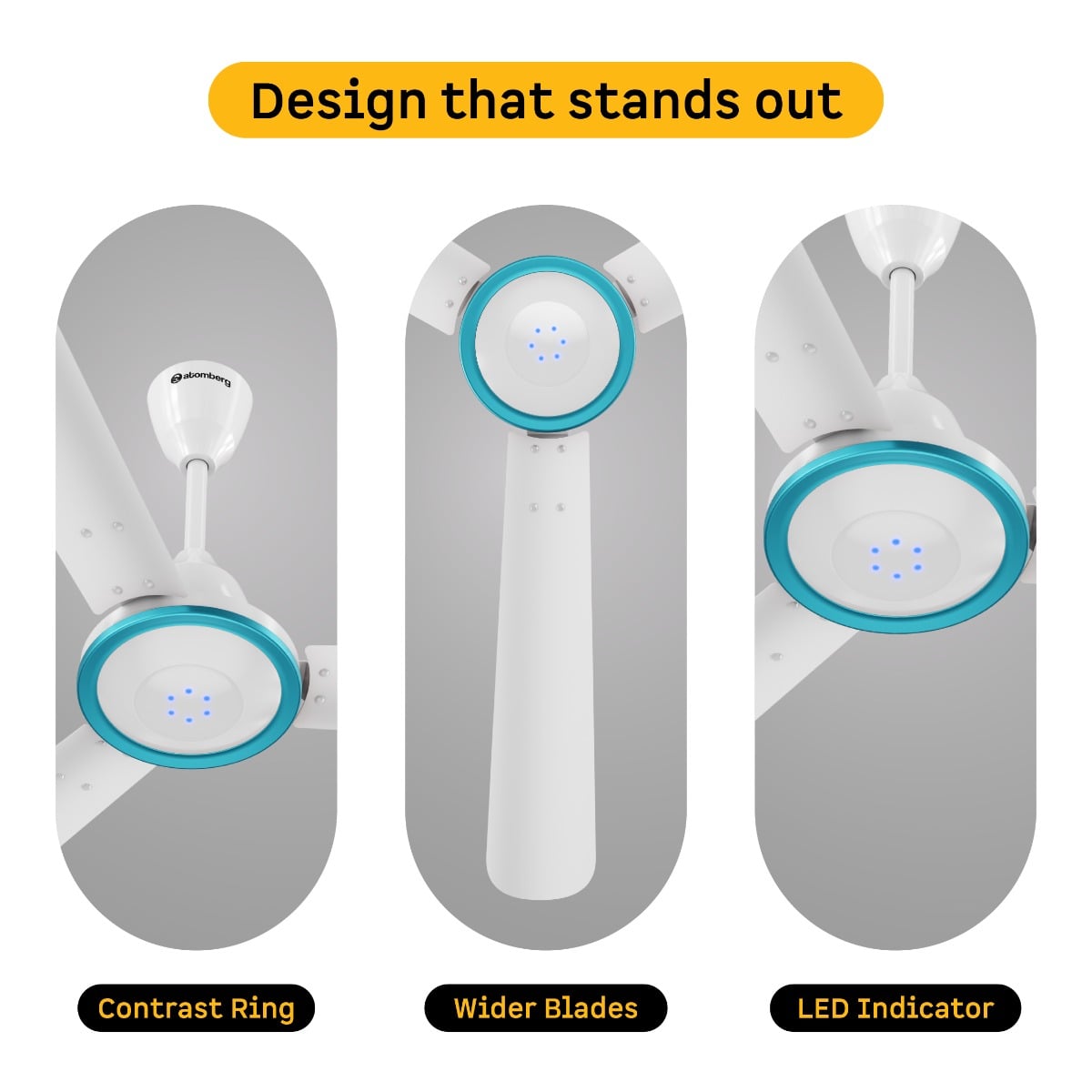 Atomberg Erica Viso 1230mm Designer BLDC Ceiling Fan with Remote | 5-star | Best- in-class Air Delivery | New Blade Design | Low noise | LED Speed Indicator | 1+1* Years Warranty (Gloss White)