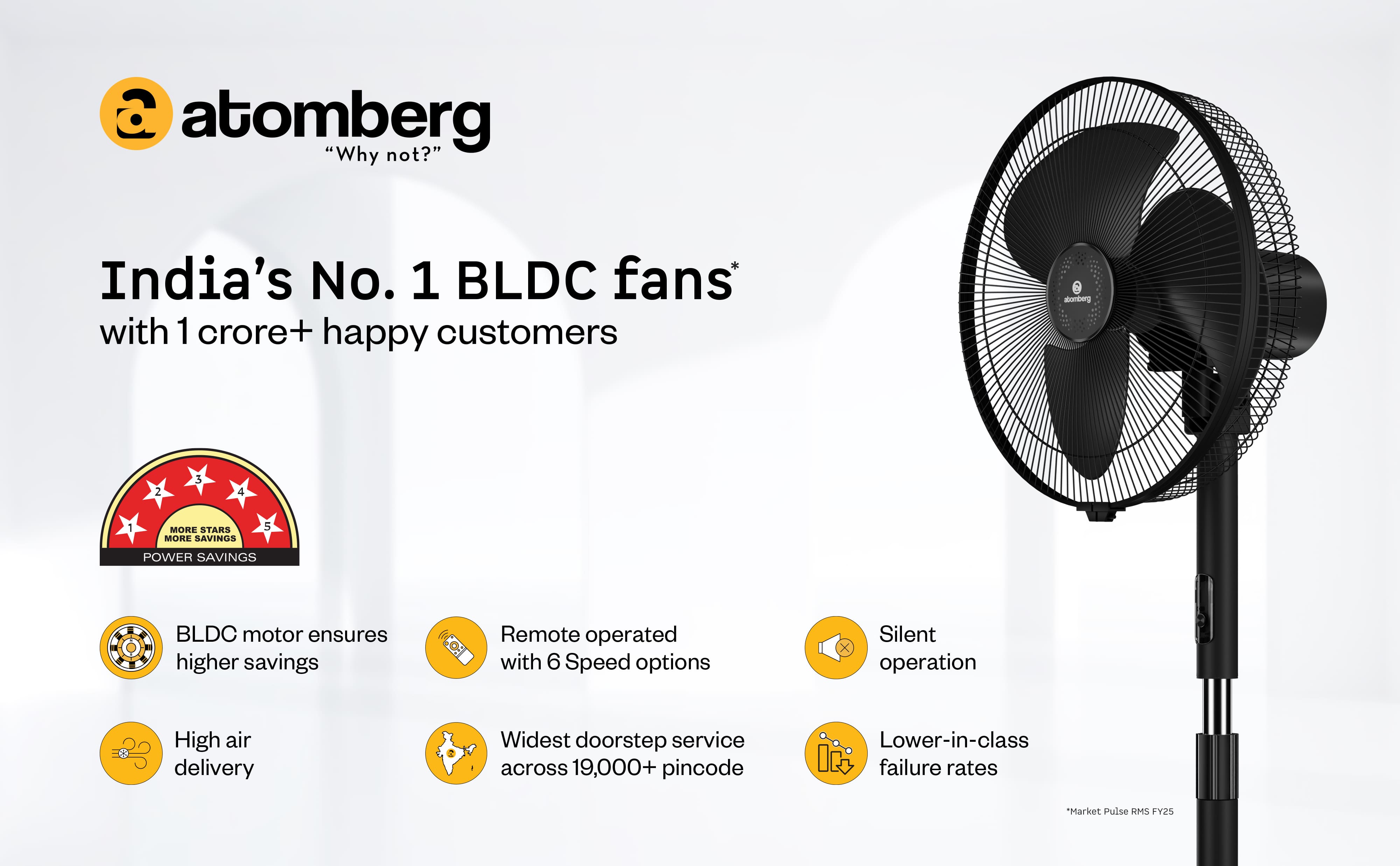 Save energy while staying cool with Atomberg’s BLDC stand fans, the smarter way to beat the heat.