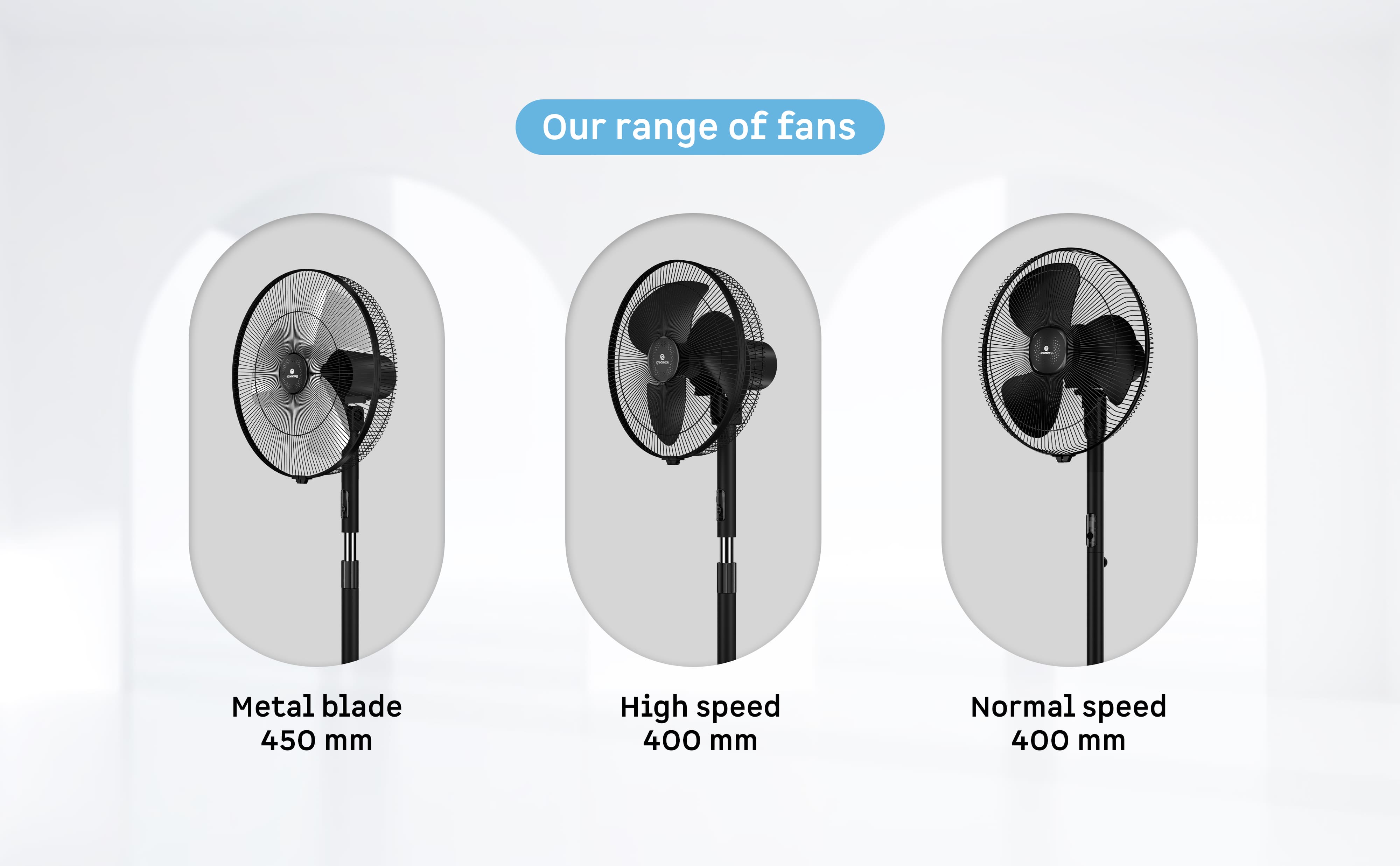 A 400mm high-speed pedestal fan is suitable for most rooms, from bedrooms to offices.