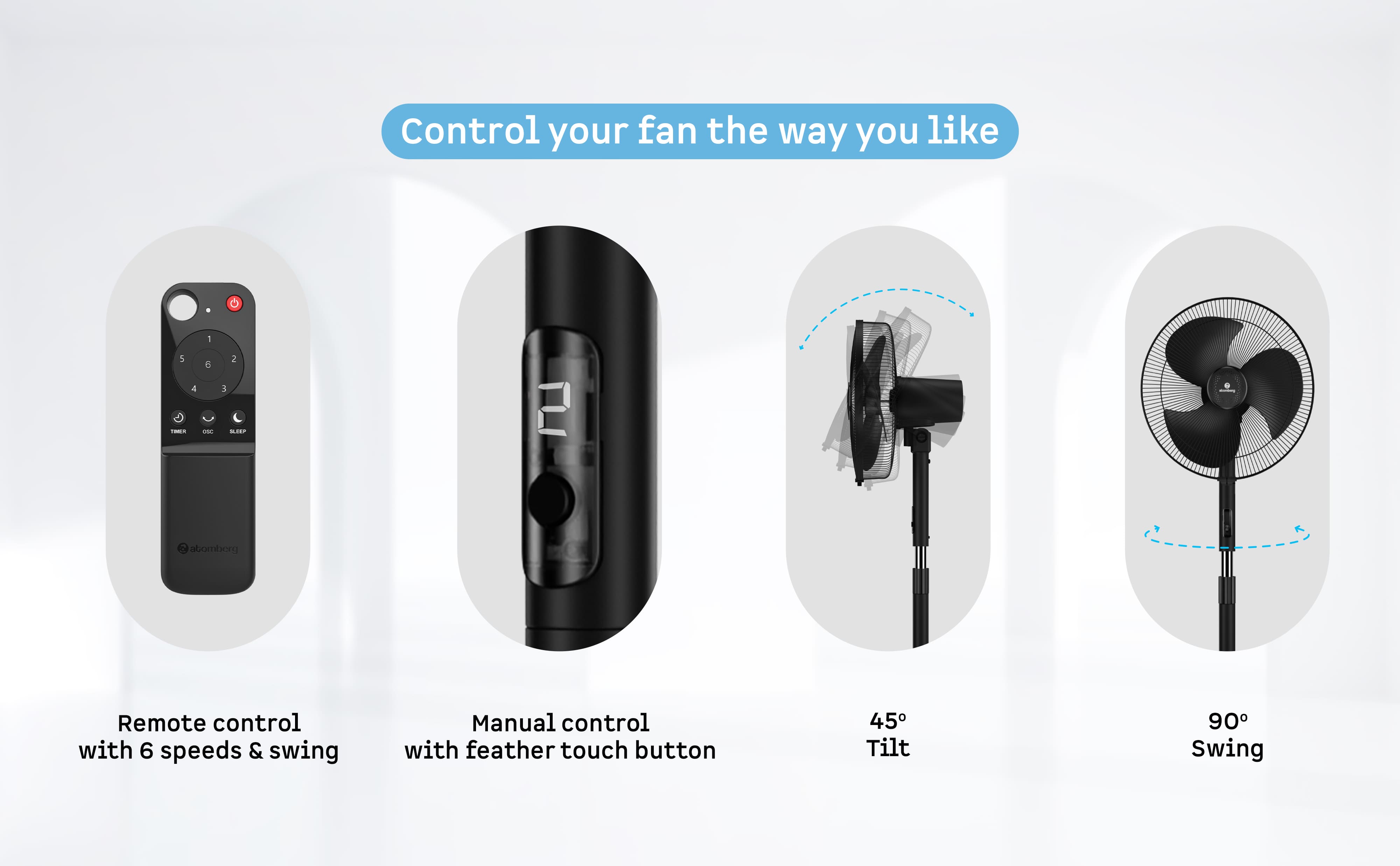 Atomberg’s pedestal fans combine smart design with advanced technology to offer unmatched comfort and control. Here are the standout features that make our standing fans a top choice: