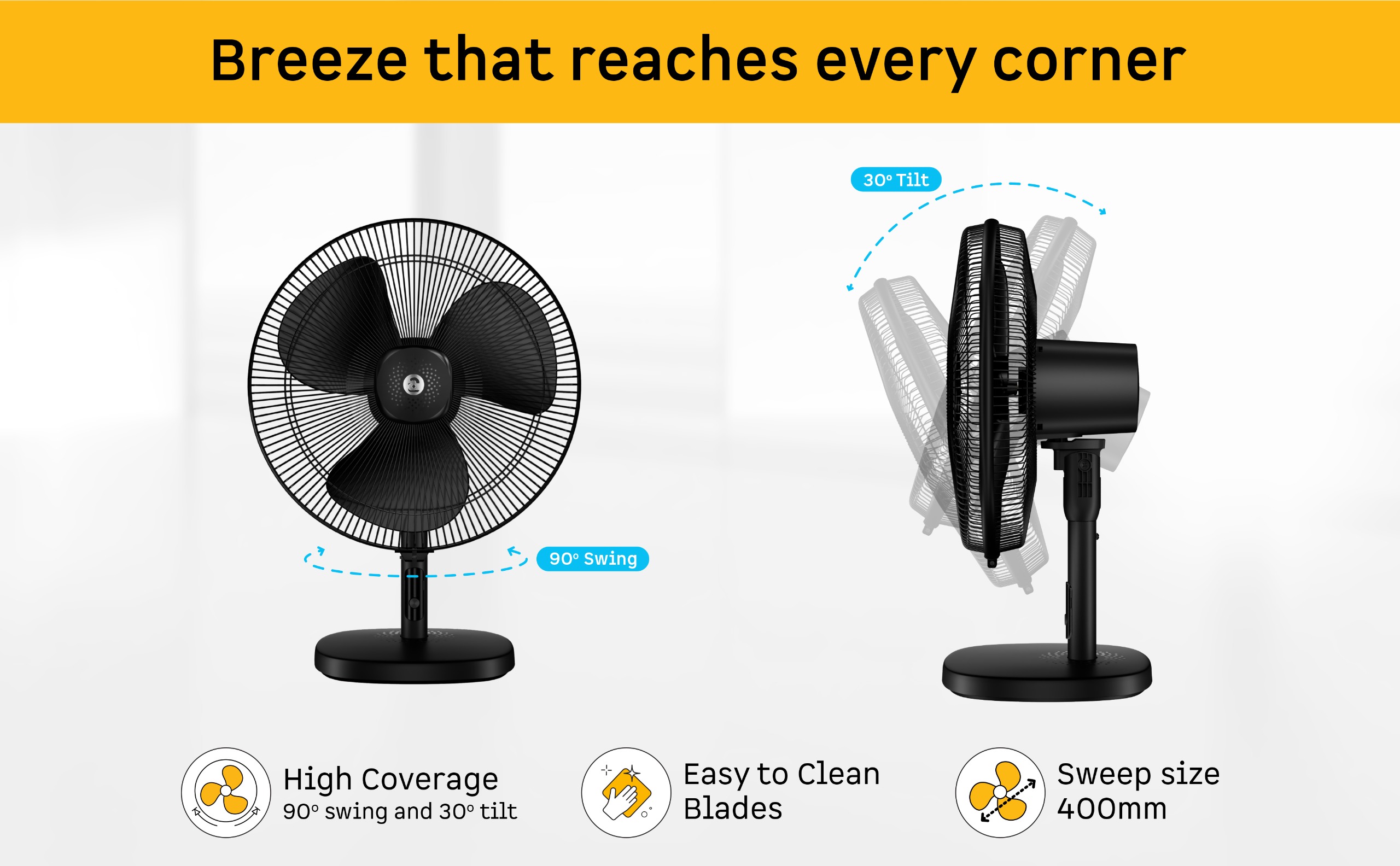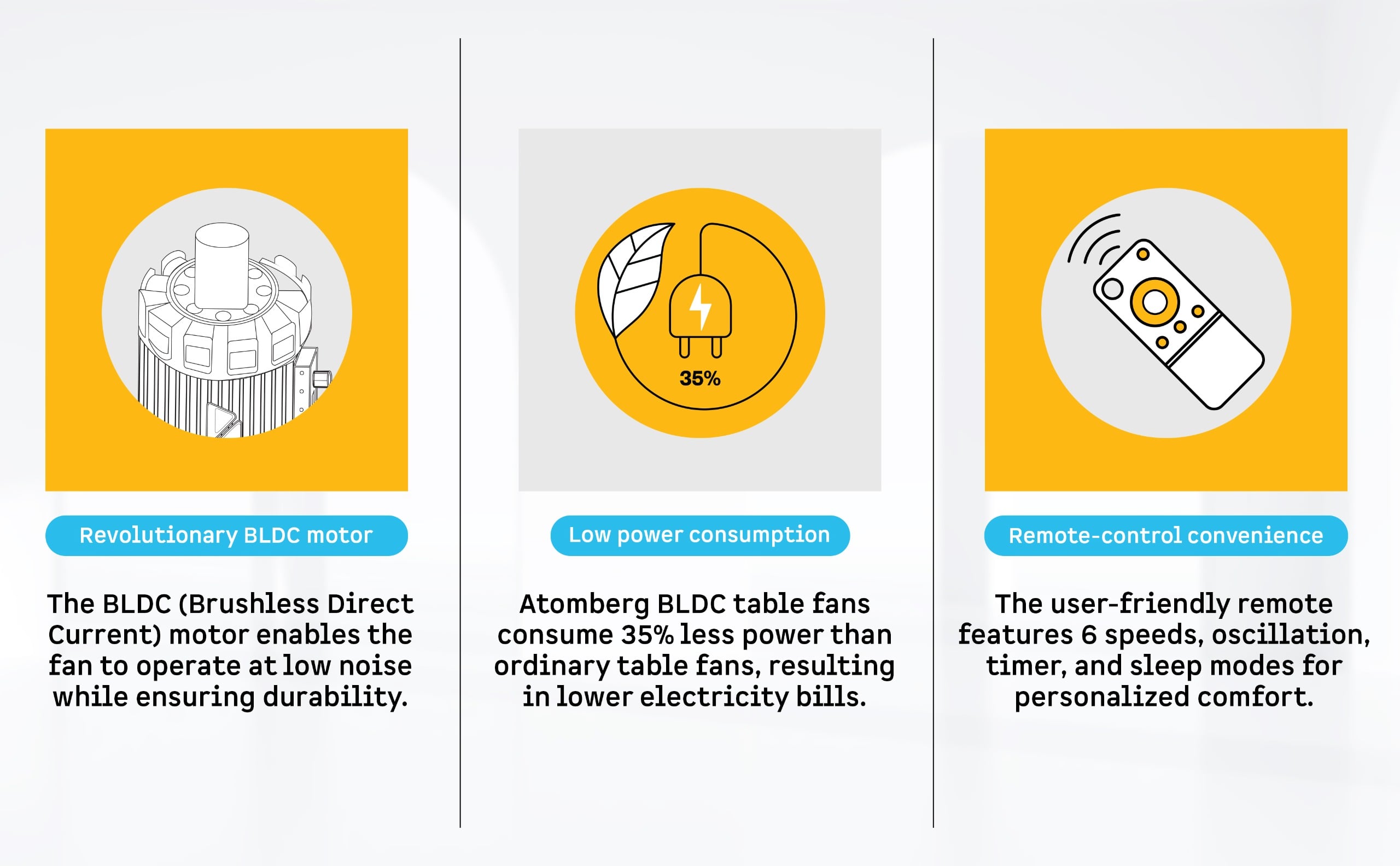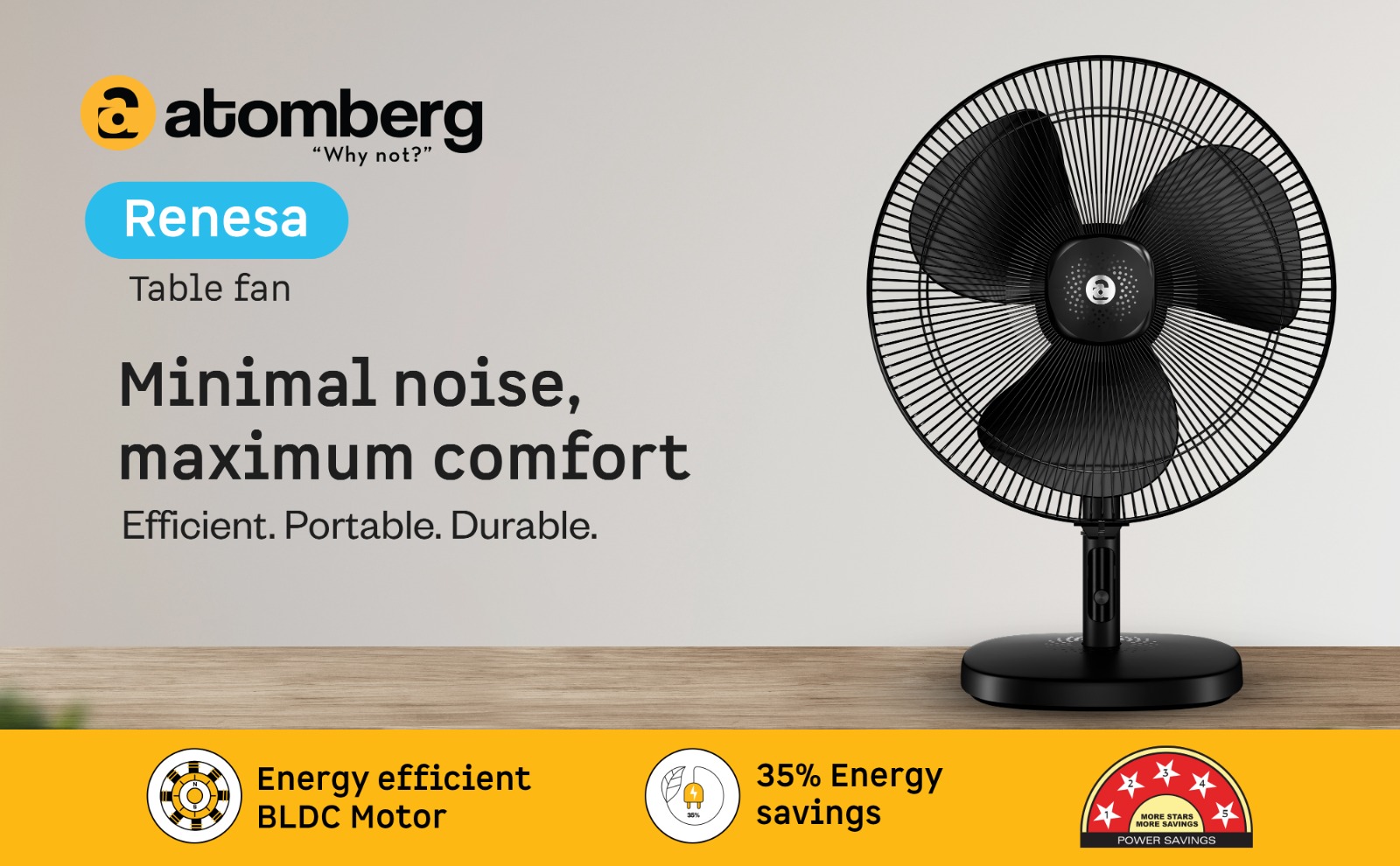 atomberg Renesa 400mm Table Fan | Ideal for Home & Office| Silent BLDC Stand Fan | LED Display | 6 Speeds | 35W | Remote with Oscillation, Timer, Sleep | Easy to clean |2 Years Warranty (Snow White)