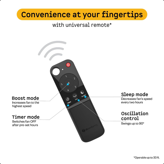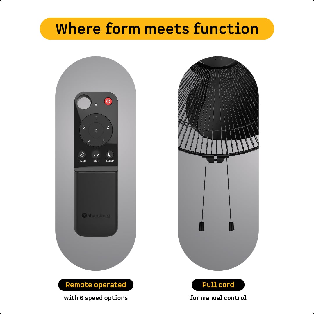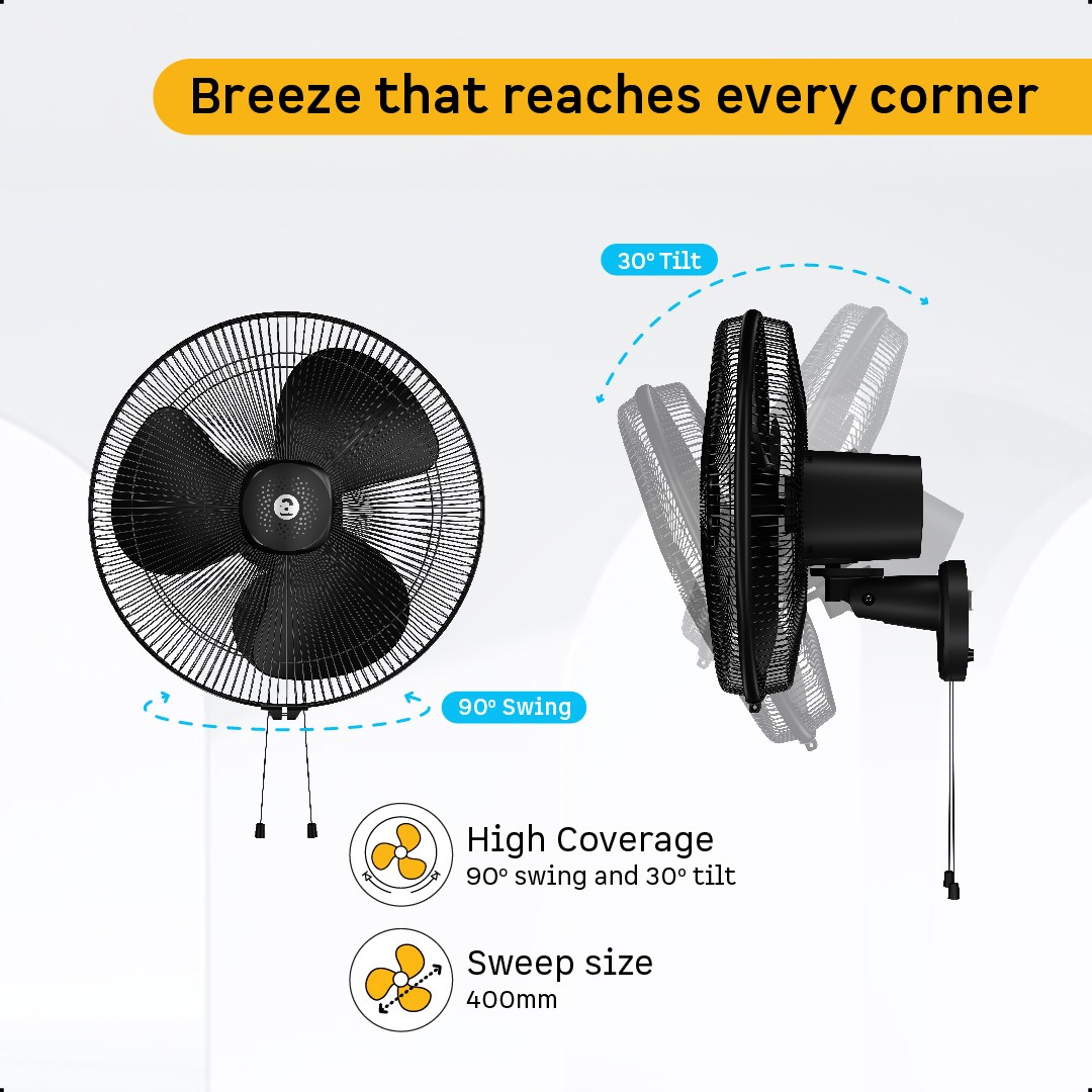 Atomberg Renesa 400mm Wall Mount Fan | 5-star rated | Ideal for Home & Office | Silent BLDC Stand Fan | 6 Speeds | 35W | Remote with Oscillation, Timer, Sleep | 2 Years Warranty (Midnight Black)