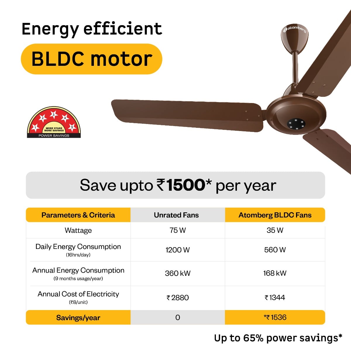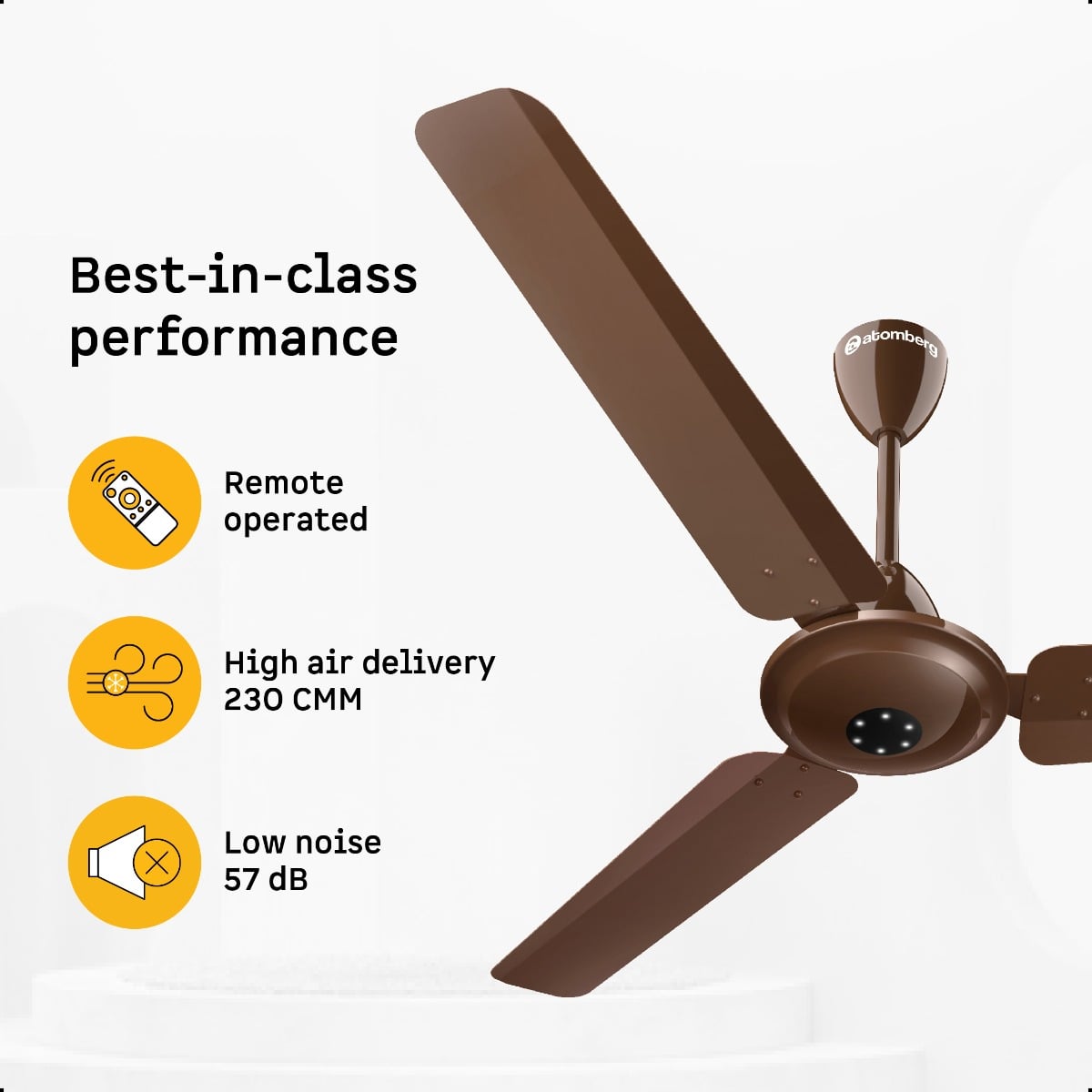 Atomberg Efficio Alpha 1200 mm BLDC Ceiling Fan with Remote Control & LED Indicators | Gloss Brown