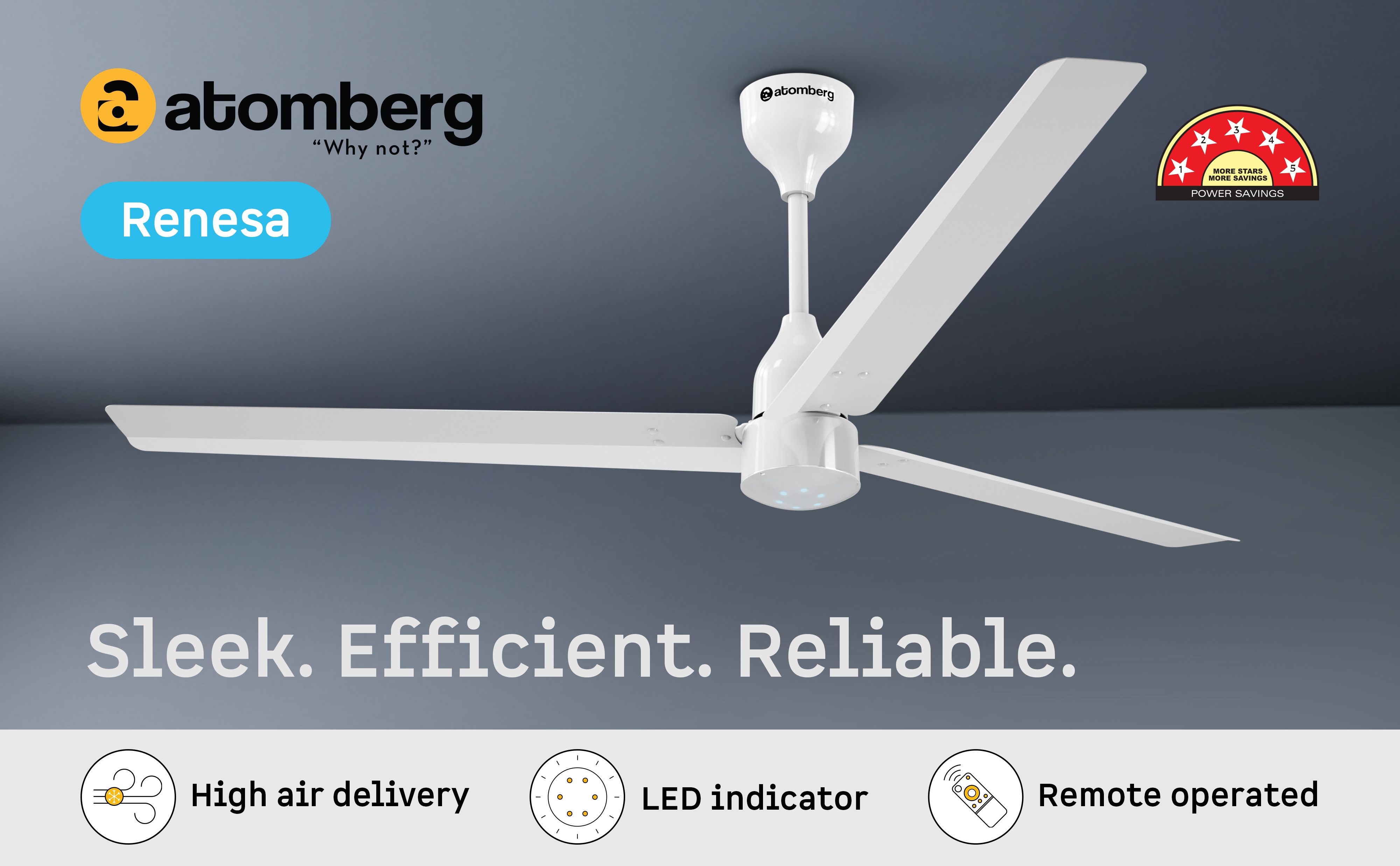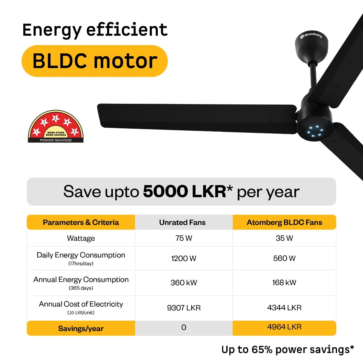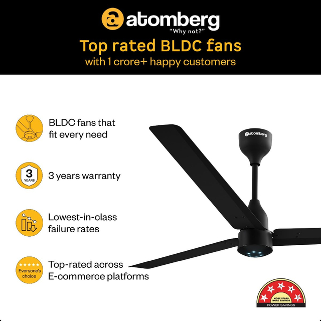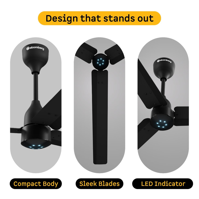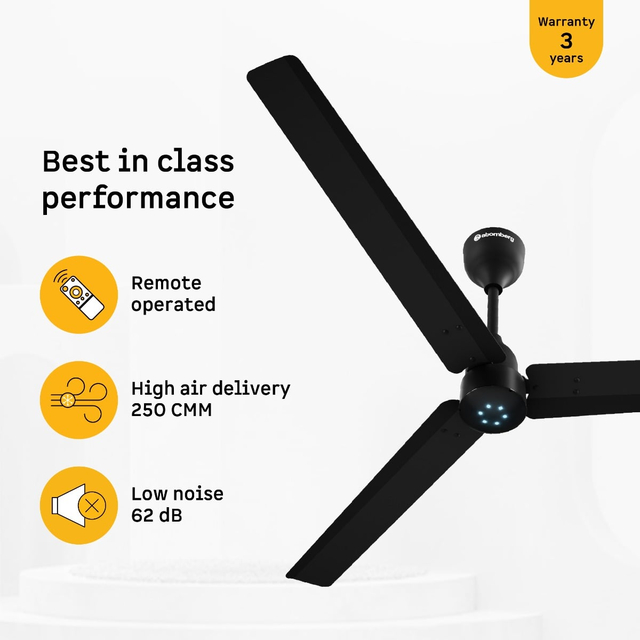 Atomberg Renesa 1400mm BLDC Ceiling Fan with Remote Control | 5-star rated | High Air Delivery with Moonbeam LED Light | Sleek Design |Energy Efficient | Low Noise| 3 Years Warranty (Midnight Black)